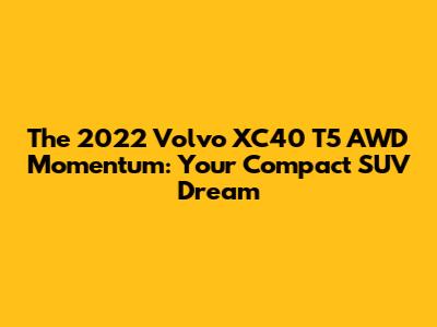 Hey guys! Let's talk about a seriously cool ride that's been making waves in the compact SUV scene: the 2022 Volvo XC40 T5 AWD Momentum. If you're on the hunt for a vehicle that perfectly blends style, performance, and practicality, then buckle up, because this one might just be your next automotive obsession. We're going to dive deep into what makes this particular trim of the XC40 so special, exploring its design, its guts, and all the little things that make driving it a joy. Forget those boring, utilitarian SUVs; the XC40 is here to inject some serious personality into your daily commute and weekend adventures. It's the kind of car that doesn't just get you from point A to point B, it makes the journey itself something to look forward to. We'll be covering everything from its sleek exterior and thoughtfully designed interior to the punchy T5 engine and the confidence-inspiring AWD system. Plus, we'll touch on those signature Volvo safety features that, let's be honest, are a huge part of the brand's appeal. So, whether you're a first-time car buyer or looking to upgrade your current set of wheels, stick around. We're about to uncover why the 2022 Volvo XC40 T5 AWD Momentum is a standout choice in a crowded market. Get ready to find out if this Swedish stunner is the perfect fit for your lifestyle. Let's get started!