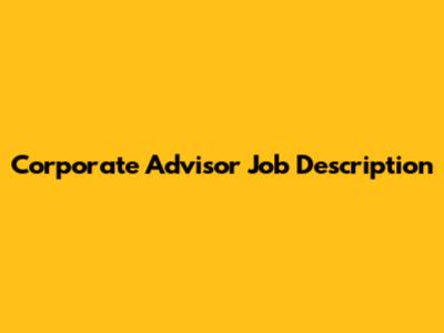 Corporate Advisor: Job Description & Key Responsibilities