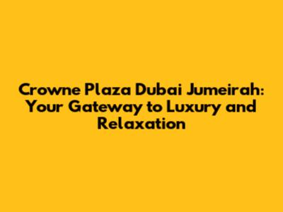 Crowne Plaza Dubai Jumeirah: Your Ultimate Guide