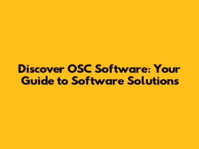 Discover OSC Software: Your Guide To Software Solutions