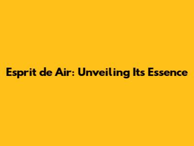 Esprit de Air: Unveiling Its Essence