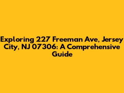 Hey guys, let's dive into the details of 227 Freeman Ave, Jersey City, NJ 07306! This address is more than just a string of numbers and letters; it's a gateway to understanding a specific location in a vibrant city. We'll explore everything from its geographical context to potential points of interest, painting a detailed picture of what you might find there. This guide aims to provide you with a well-rounded understanding, whether you're a potential resident, a curious investor, or just someone who loves to explore new places. Let's get started!