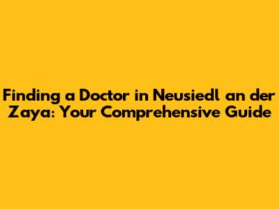 Finding A Doctor In Neusiedl An Der Zaya: Your Comprehensive Guide