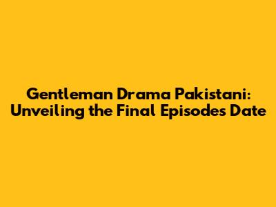 Gentleman Drama Pakistani: When's The Finale?