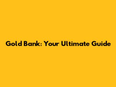 Gold Bank: Your Ultimate Guide