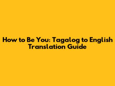 How To Be You: Tagalog To English Translation Guide