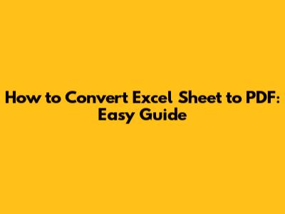 How To Convert Excel Sheet To PDF: Easy Guide