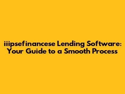 Iiipsefinancese Lending Software: Your Guide To A Smooth Process