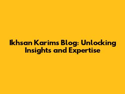 Ikhsan Karim's Blog: Insights And Expertise