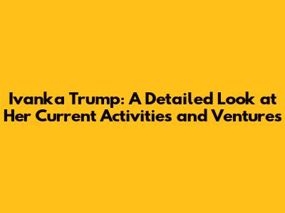 Hey everyone! Let's dive into the world of Ivanka Trump and see what she's been up to lately. It's no secret that she's a pretty well-known figure, and people are always curious about her current endeavors. So, buckle up as we explore Ivanka Trump's latest updates, career moves, and personal life. We'll try to cover it all, from business ventures to family life, giving you a comprehensive look at what's been happening in her world. Ready? Let's go!