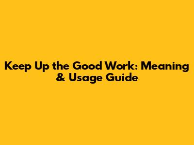 Keep Up The Good Work: Meaning & Usage Guide