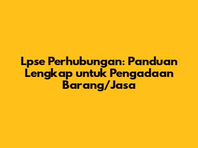 Lpse Perhubungan: Panduan Lengkap Untuk Pengadaan Barang/Jasa