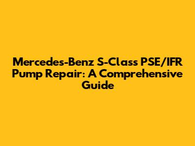 Understanding the Mercedes-Benz S-Class PSE/IFR Pump