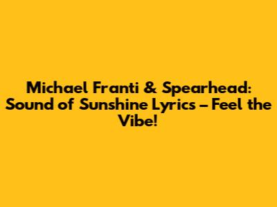 Hey music lovers! Today, we're diving deep into the lyrics of a track that just screams good vibes and pure happiness: "Sound of Sunshine" by the one and only Michael Franti & Spearhead. You know, sometimes you just need a song that lifts you up, right? This one does exactly that. It's more than just catchy tunes; it's a whole mood, a reminder to embrace the good stuff in life. So, grab your shades, find a sunny spot, and let's break down these awesome lyrics together. We'll explore what makes this song so special, the messages it carries, and why it’s become such a feel-good anthem for so many people around the globe.