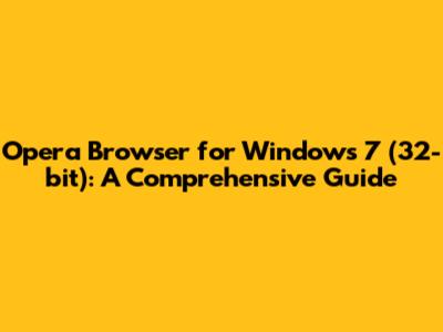 Opera Browser For Windows 7 (32-bit): A Comprehensive Guide