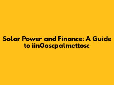 Solar Power And Finance: A Guide To Iin0oscpalmettosc