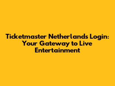 Ticketmaster Netherlands Login: Your Guide To Concerts & Events