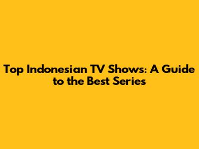 Top Indonesian TV Shows: A Guide To The Best Series