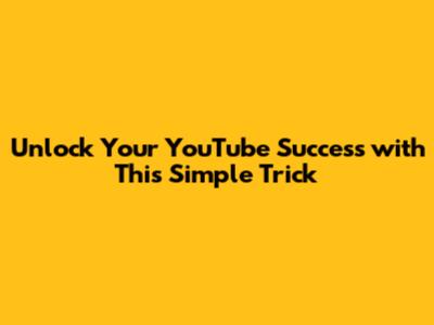 Unlock Your YouTube Success With This Simple Trick