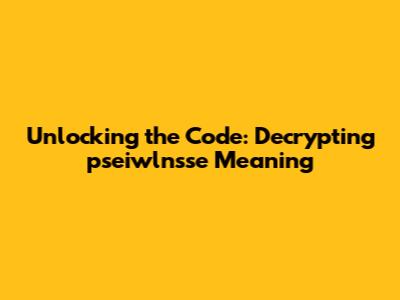 Unlocking The Code: Decrypting 'pseiwlnsse' Meaning