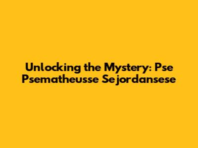 Unlocking The Mystery: Pse Psematheusse Sejordansese