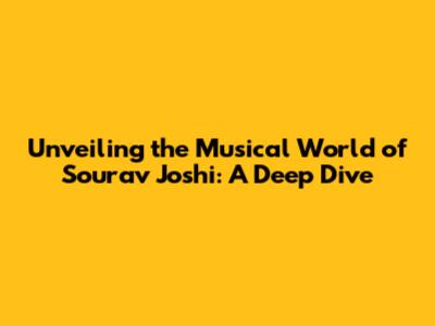Unveiling The Musical World Of Sourav Joshi: A Deep Dive