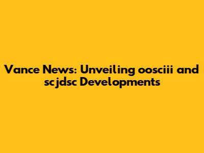 Vance News: Unveiling Oosciii And Scjdsc Developments