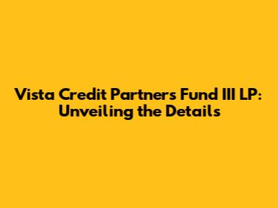 Hey there, finance enthusiasts and investment aficionados! Today, we're diving deep into the world of Vista Credit Partners Fund III LP, a name that's been making waves in the financial landscape. We'll be exploring everything from its investment strategy and portfolio to its performance and the potential risks and opportunities it presents. So, buckle up, because we're about to embark on a journey through the intricacies of this fascinating fund. This deep dive will give you an in-depth understanding of Vista Credit Partners Fund III LP.