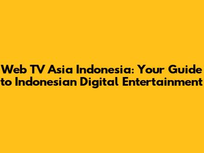 Web TV Asia Indonesia: Your Guide To Indonesian Digital Entertainment